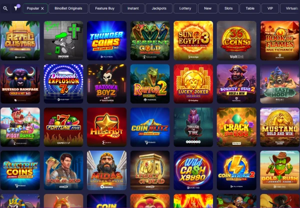 BinoBet lobby is opgebouwd rond keuze zonder navigatie lastig te maken, met ongeveer 7.000 titels verdeeld over slots, tafelspellen, live dealer-ruimtes, crashgames en een sportsbook-sectie. We werken met gevestigde studio’s omdat betrouwbare performance net zo belangrijk is als visuals, en we selecteren providers die stabiele sessies kunnen leveren bij piekverkeer. Daarom zie je namen als NetEnt, Pragmatic Play, Play'n GO, Evolution Gaming, Nolimit City, Yggdrasil, Red Tiger, Novomatic, BGaming en Evoplay.