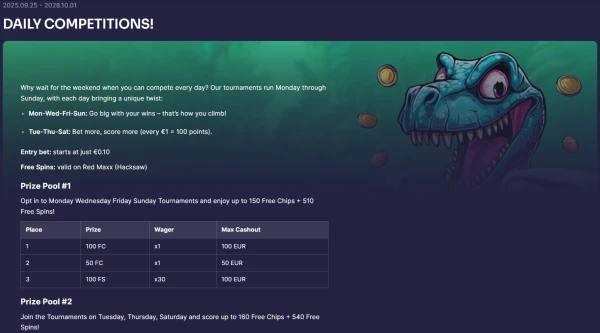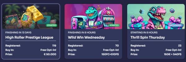 - Maandelijkse prijzenpot: strijd om een deel van een prijzenpot van €14.000 (check kwalificerende games, duur en puntenregels op de toernooipagina).