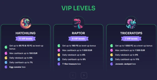 Ons loyaliteitsprogramma bij BinoBet Casino heeft 5 levels met 51 sublevels. Je stijgt door actief spel, en elk level kan betere beloningen ontgrendelen zoals level-up bonussen, dagelijkse cashback en hogere inzetlimieten. Onze spelers kunnen de voortgang in hun account volgen, wat helpt om een duidelijk doel te stellen voor de volgende tier.