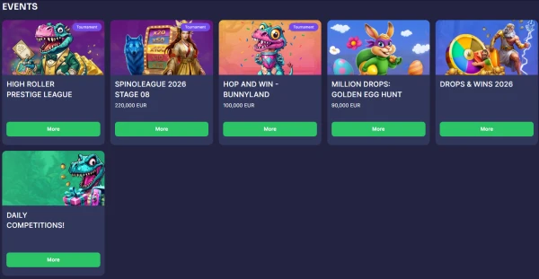 Toernooien zijn eenvoudig bij BinoBet: je speelt geselecteerde kwalificerende games, verdient punten via inzetten en resultaten en stijgt op een ranglijst. Onze belangrijkste terugkerende competitie biedt maandelijks een prijzengeldpot van €14.000 en de regels tonen welke games meetellen en hoe punten worden berekend. Toelatingseisen en de duur van het toernooi staan op de eventpagina, zodat je je spel kunt plannen. Voor de beste waarde check je eerst de kwalificatielijst en volg je je positie tijdens het event, zodat je geen spins verspilt aan niet-geschikte titels.